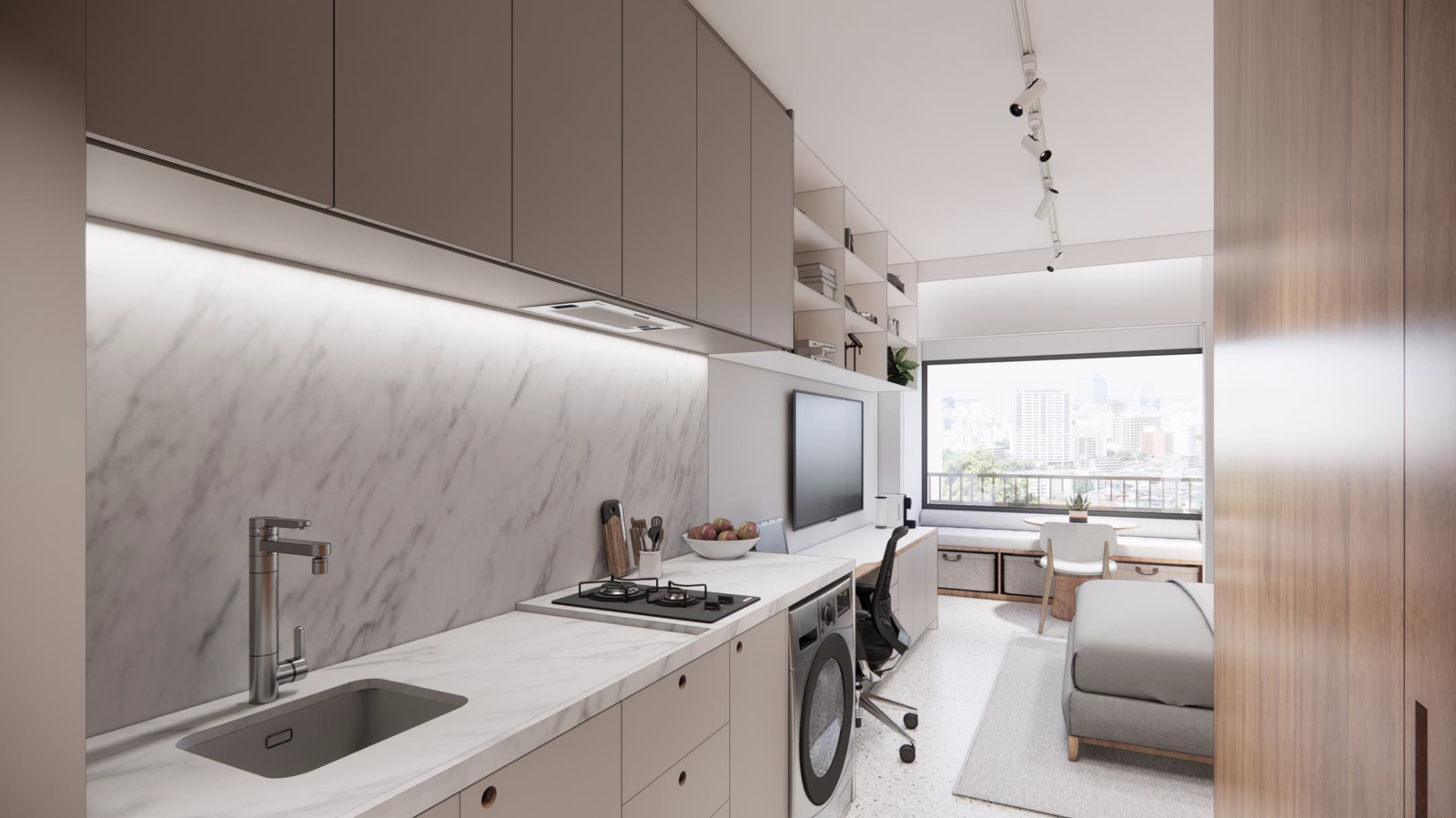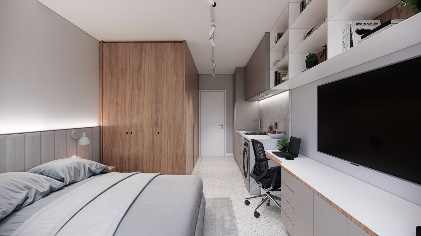 - Studios de 28m²: Compactos, funcionais e perfeitos para quem quer mais praticidade.